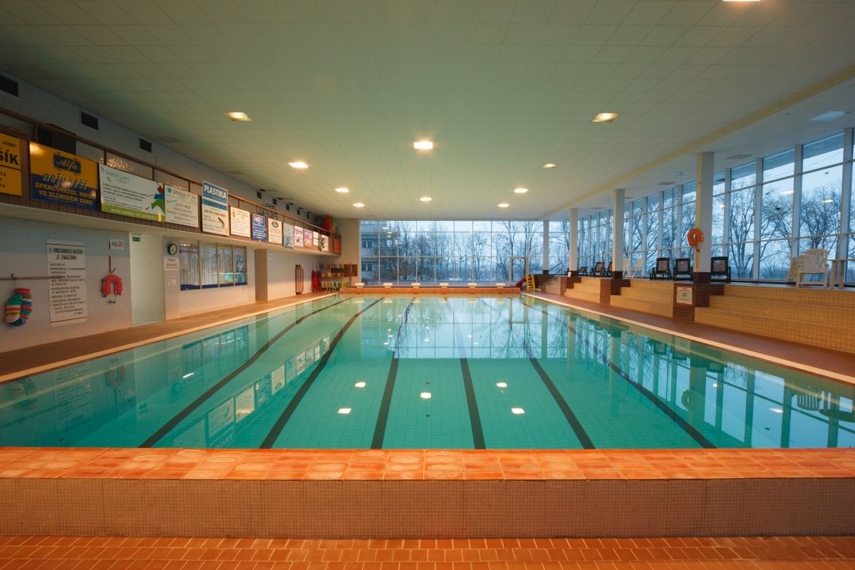 Sportovní areál letního koupaliště Bajda nabízí 50 m bazén s osmi drahami, dětský bazén, brouzdališt...